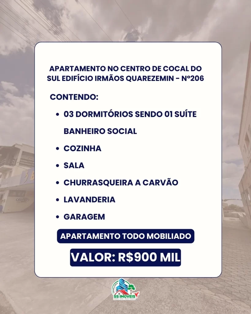 📍 Edifício Irmãos Quarezemin – Apto nº 206