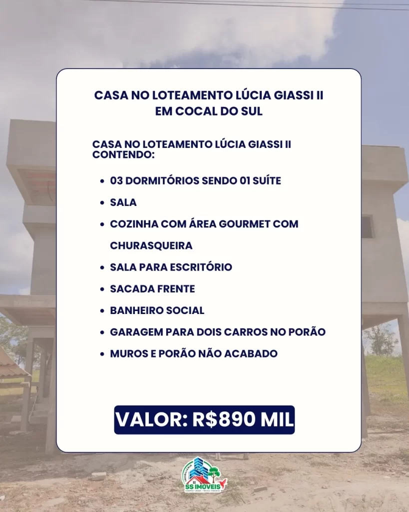 🏡 Casa à venda no Lúcia Giassi II – Cocal do Sul 🏡