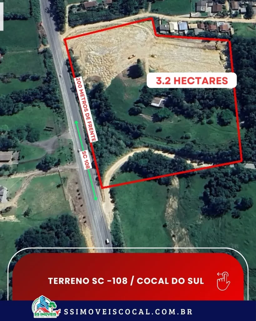 Terreno com 3.2 hectares, localizado às margens da SC-108, com 200 metros de frente, ideal para indústrias, comércios e empreendimentos em geral.